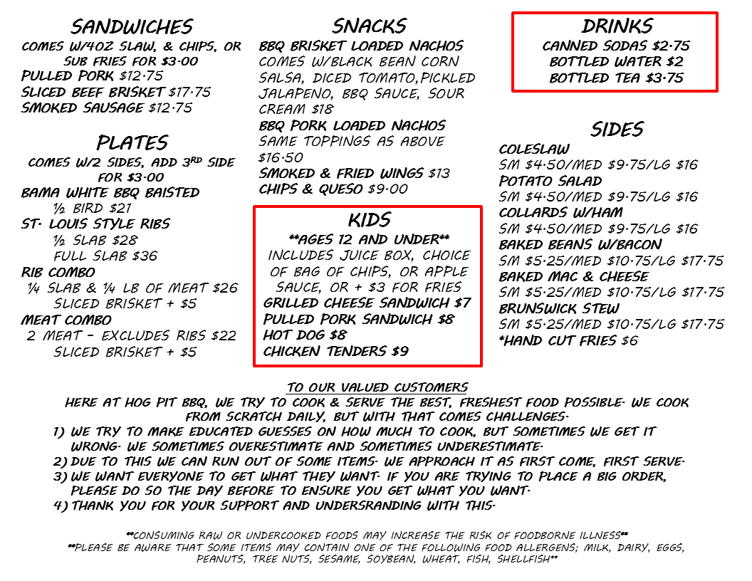 **Fried chicken & fish not offered for catering due to items not traveling well.